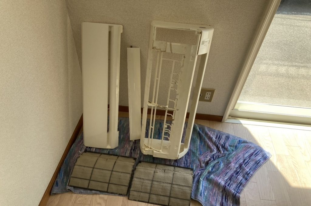 ファンやルーバーなど、カビが潜むパーツを分解します。